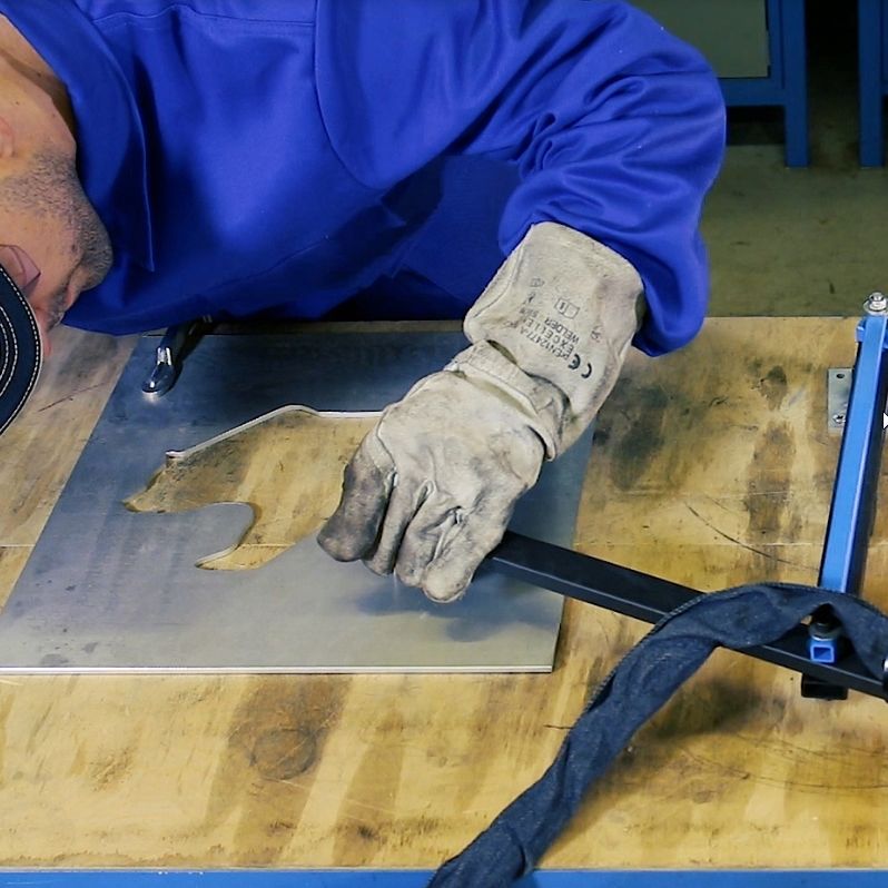 Der Pantograph ( Kopiervorrichtung im Massstab 1:1 ), ist das ideale Zubehör für den Plasmacutter zur Übertragung von laminierten Zeichnungen oder Schablonen auf ein Blech oder andere metallische Werkstoffe. Besonders im kreativen Hobbybereichs sind dem Anwender hier kaum Grenzen gesetzt. Nahezu alle erdenklichen Formen und Figuren können mit dem Pantograph kopiert bzw auf ein Werkstück über tragen werden. Hier kommen Stahl und Blechkünstler voll auf Ihre kosten.